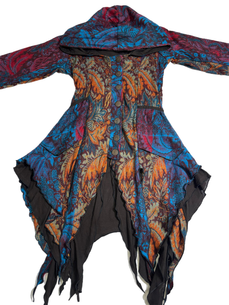 Handmade assorted colored jacket with two front pockets and a cross tie back