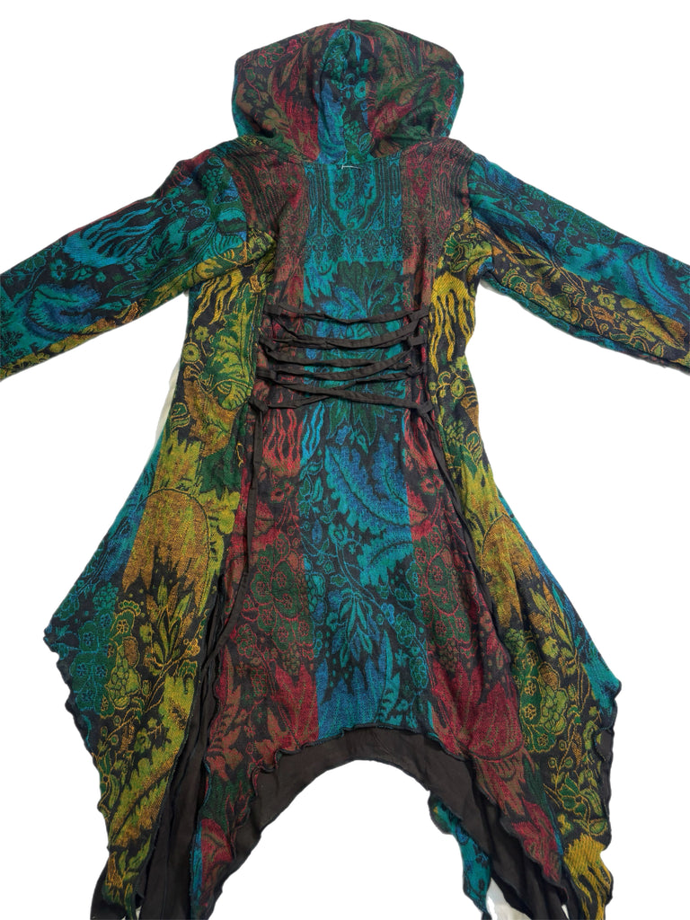 Handmade assorted colored jacket with two front pockets and a cross tie back