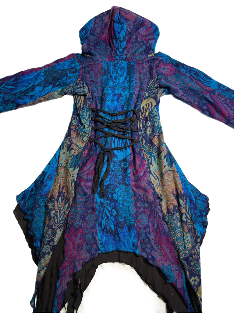 Handmade assorted colored jacket with two front pockets and a cross tie back