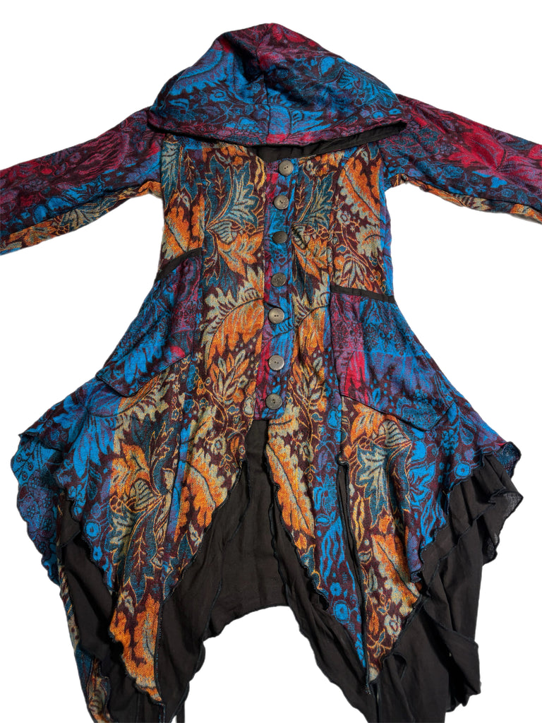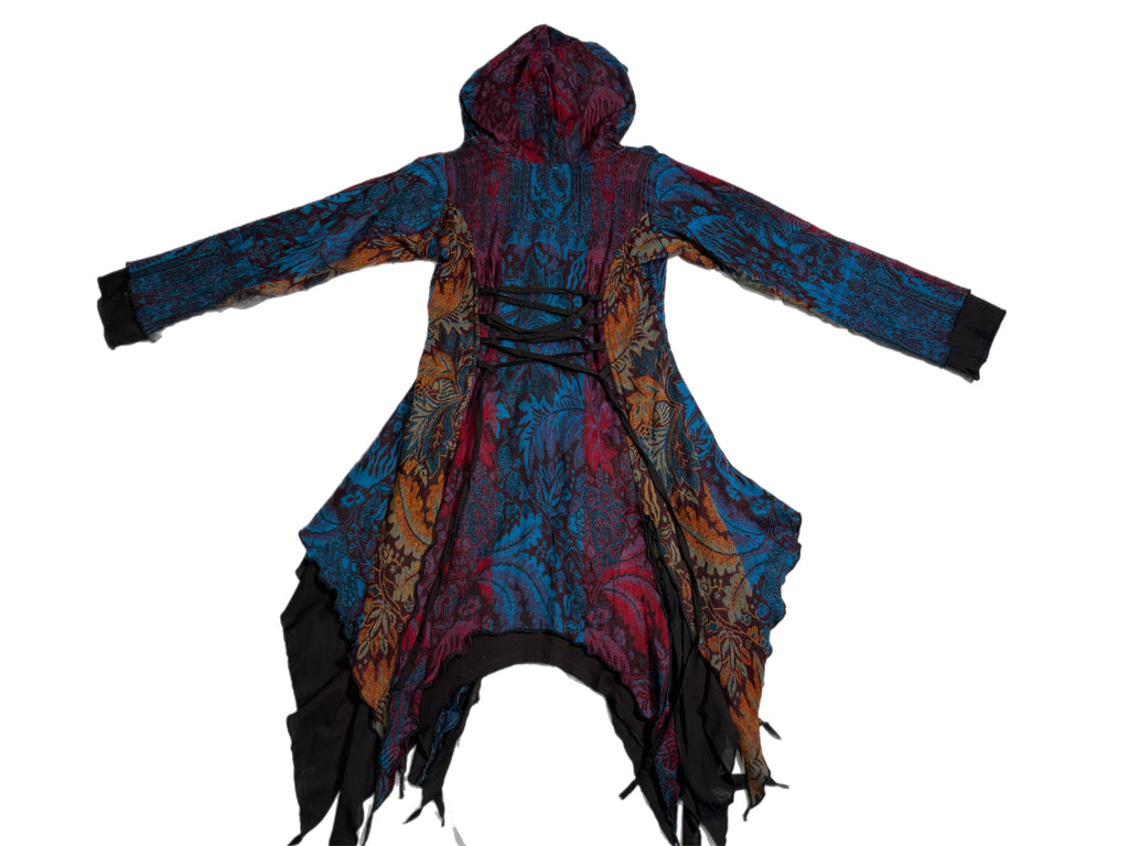 Handmade assorted colored jacket with two front pockets and a cross tie back