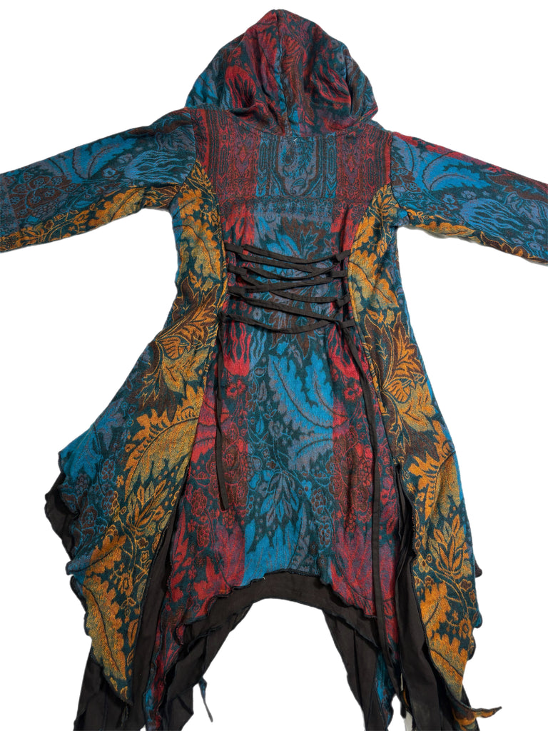 Handmade assorted colored jacket with two front pockets and a cross tie back