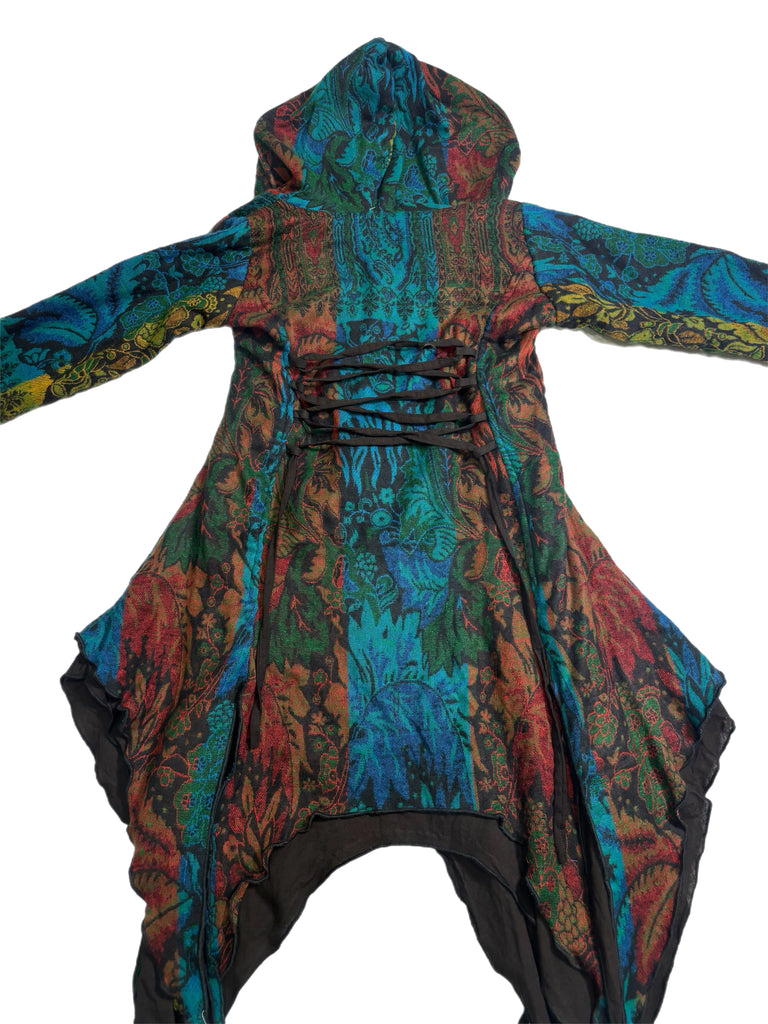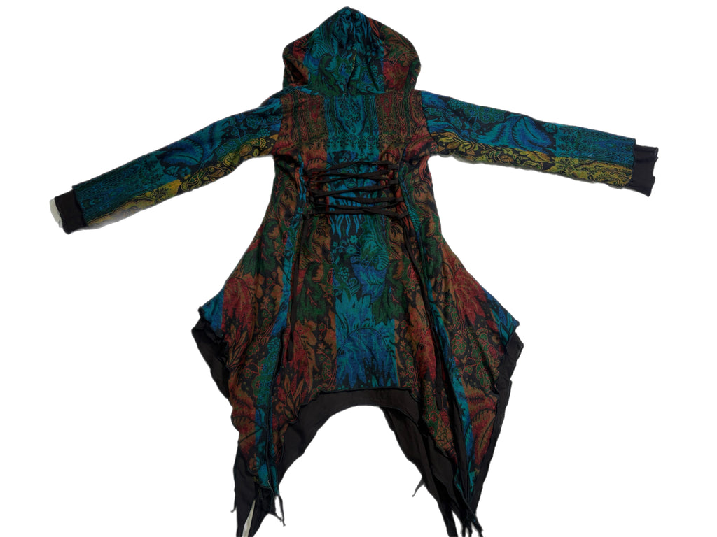 Handmade assorted colored jacket with two front pockets and a cross tie back