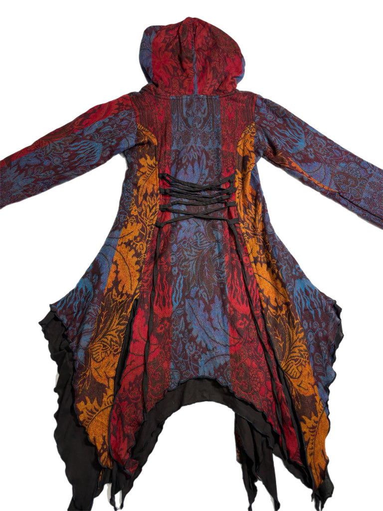Handmade assorted colored jacket with two front pockets and a cross tie back