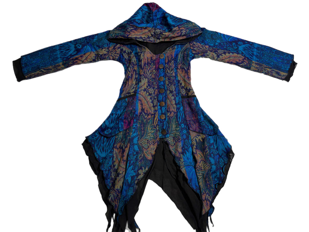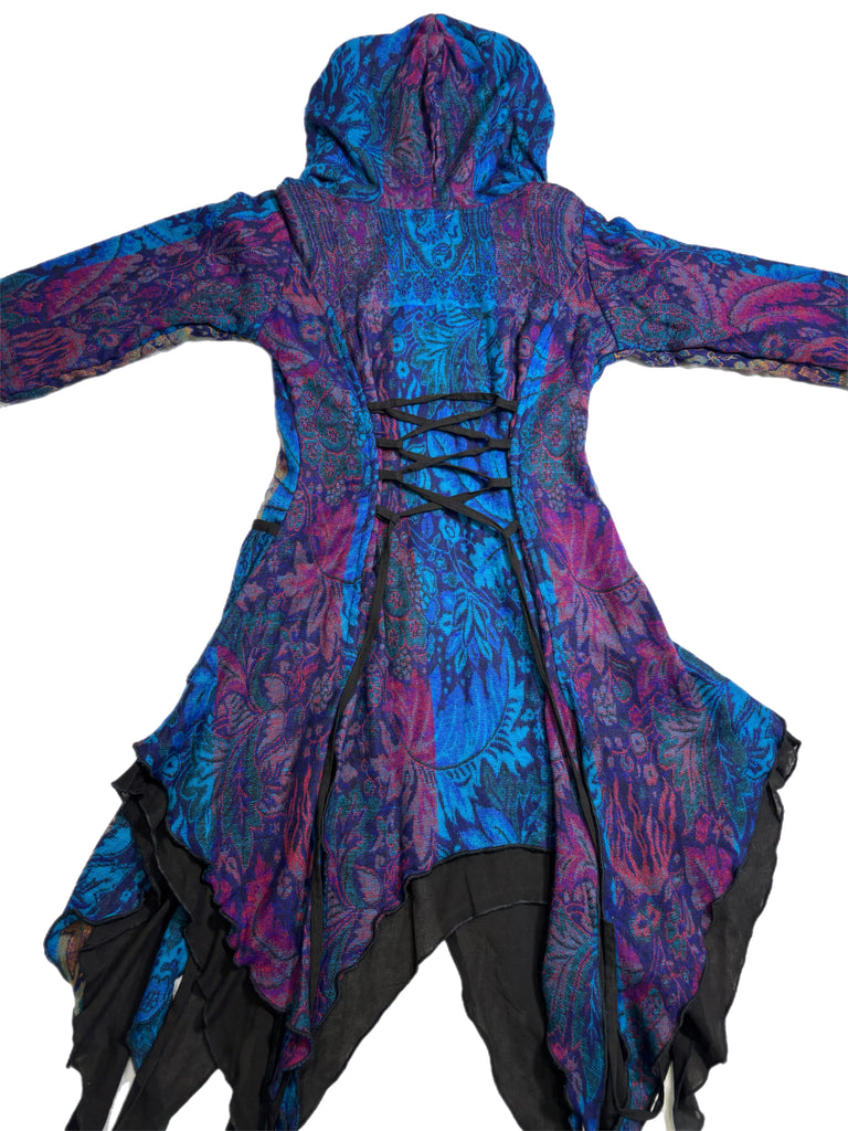 Handmade assorted colored jacket with two front pockets and a cross tie back