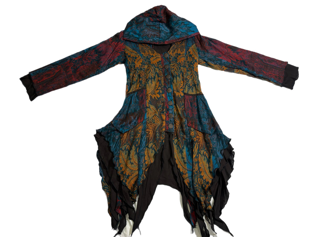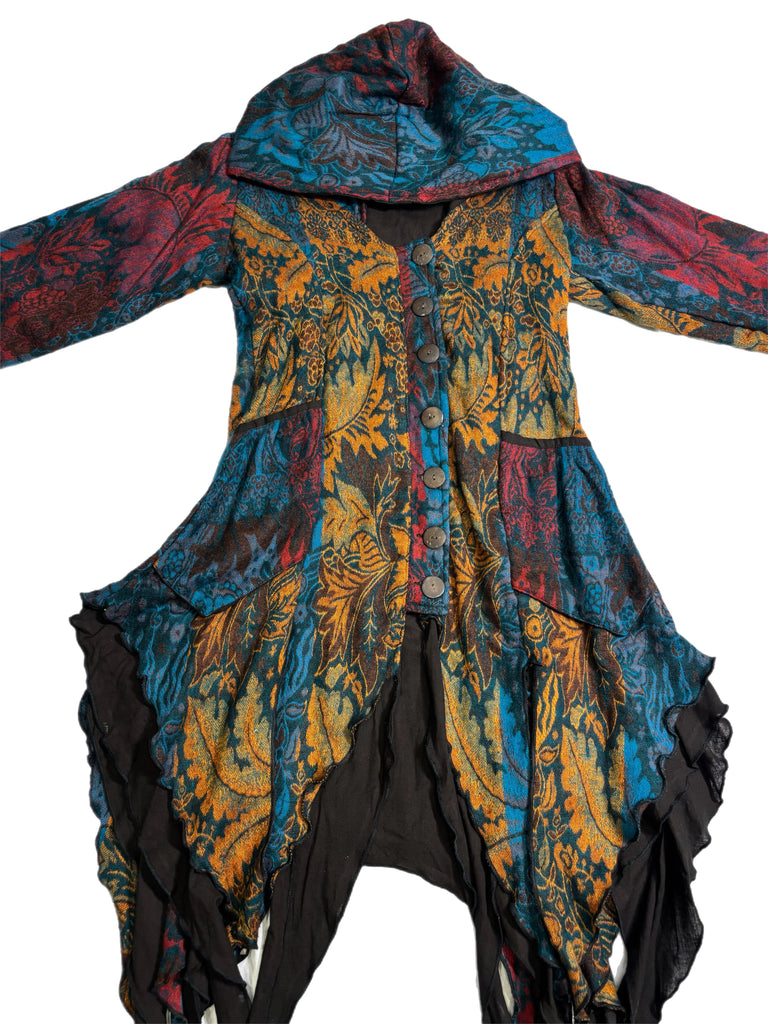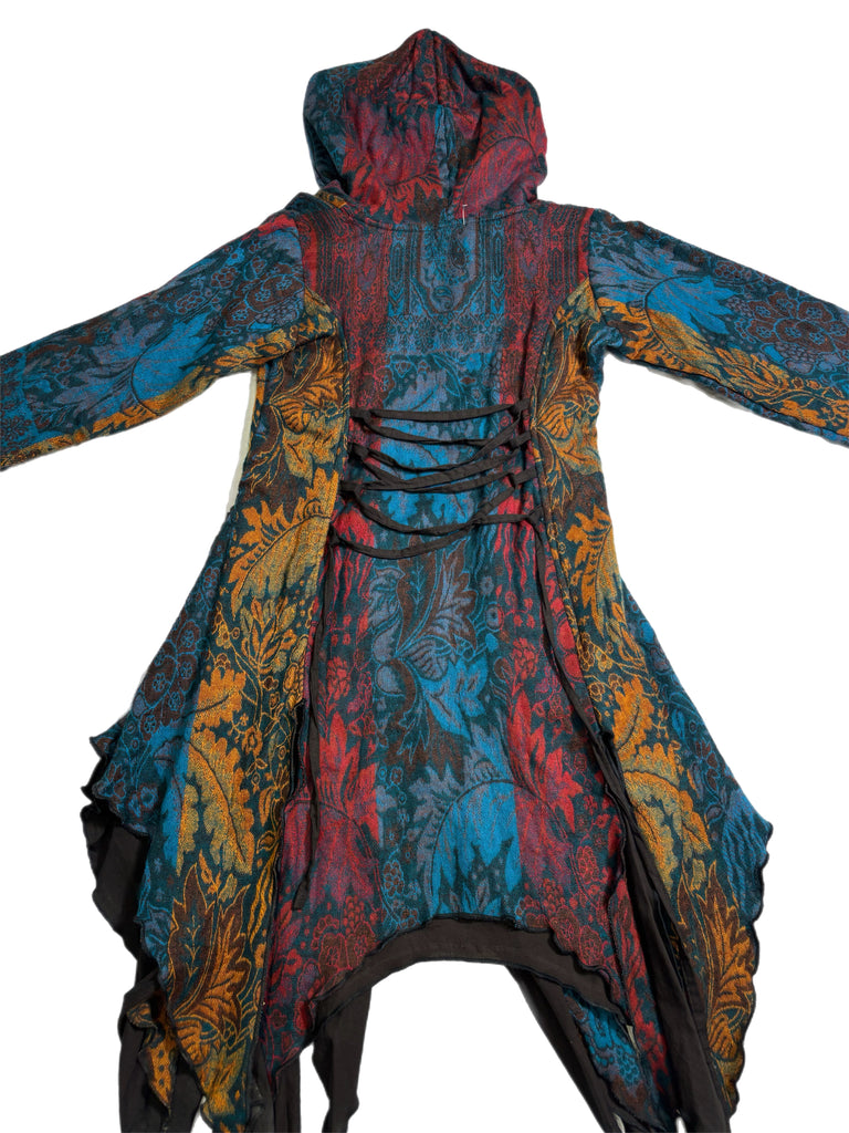 Handmade assorted colored jacket with two front pockets and a cross tie back
