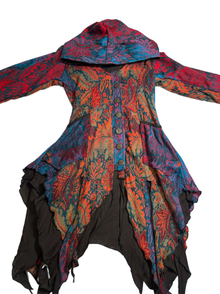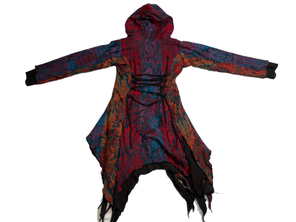 Handmade assorted colored jacket with two front pockets and a cross tie back