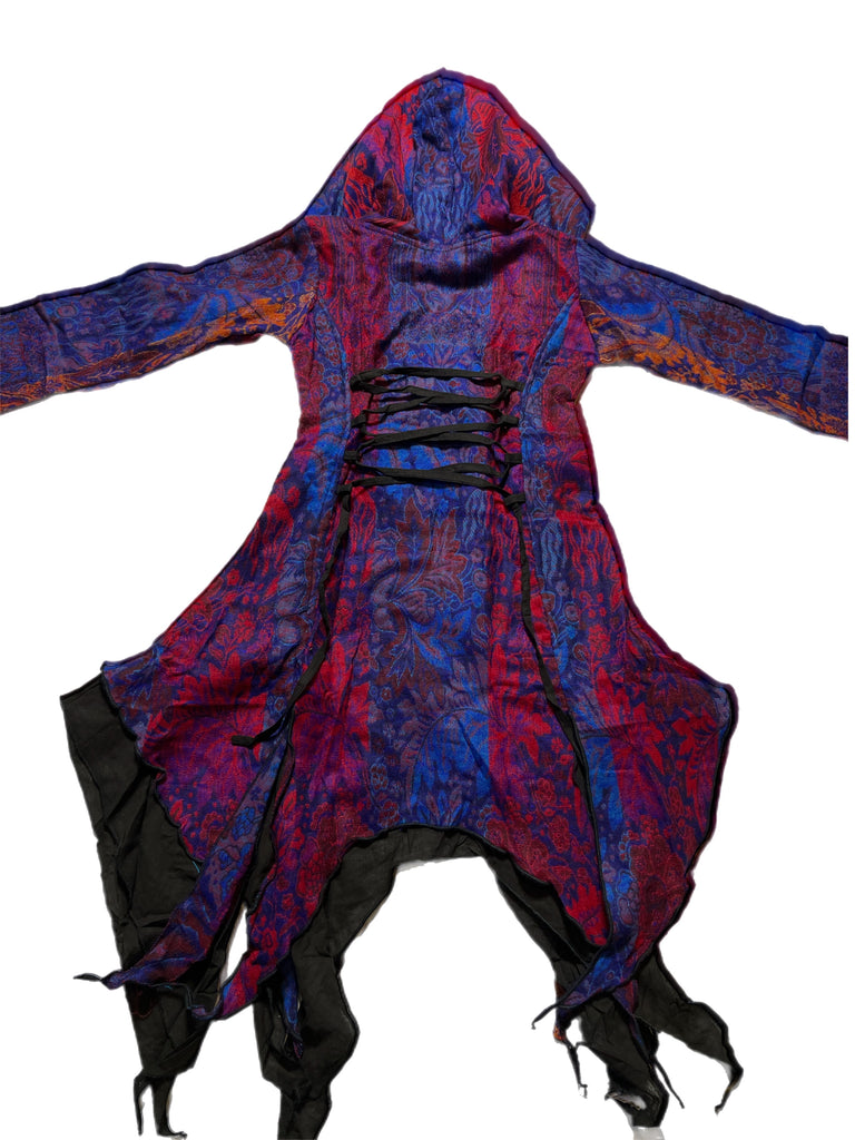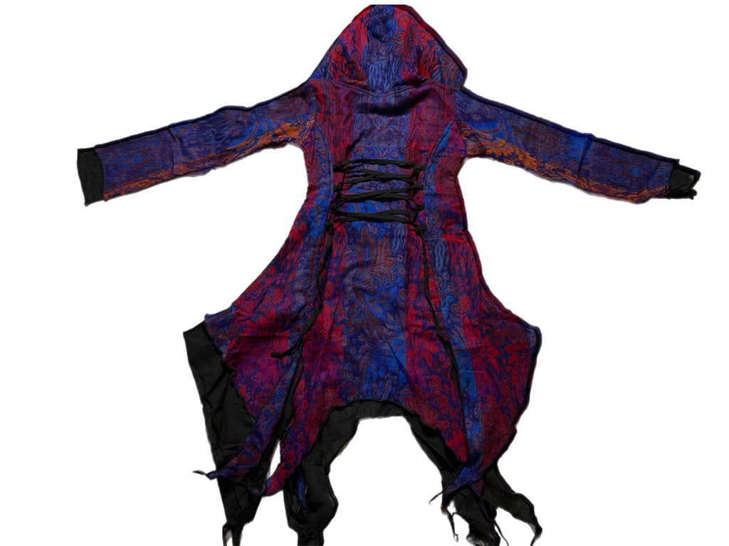 Handmade assorted colored jacket with two front pockets and a cross tie back