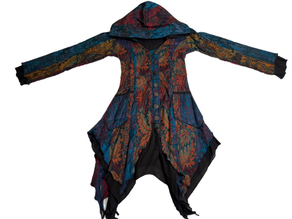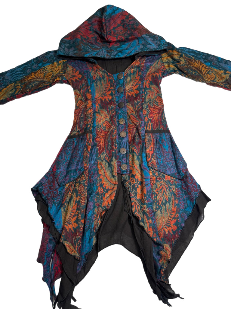 Handmade assorted colored jacket with two front pockets and a cross tie back