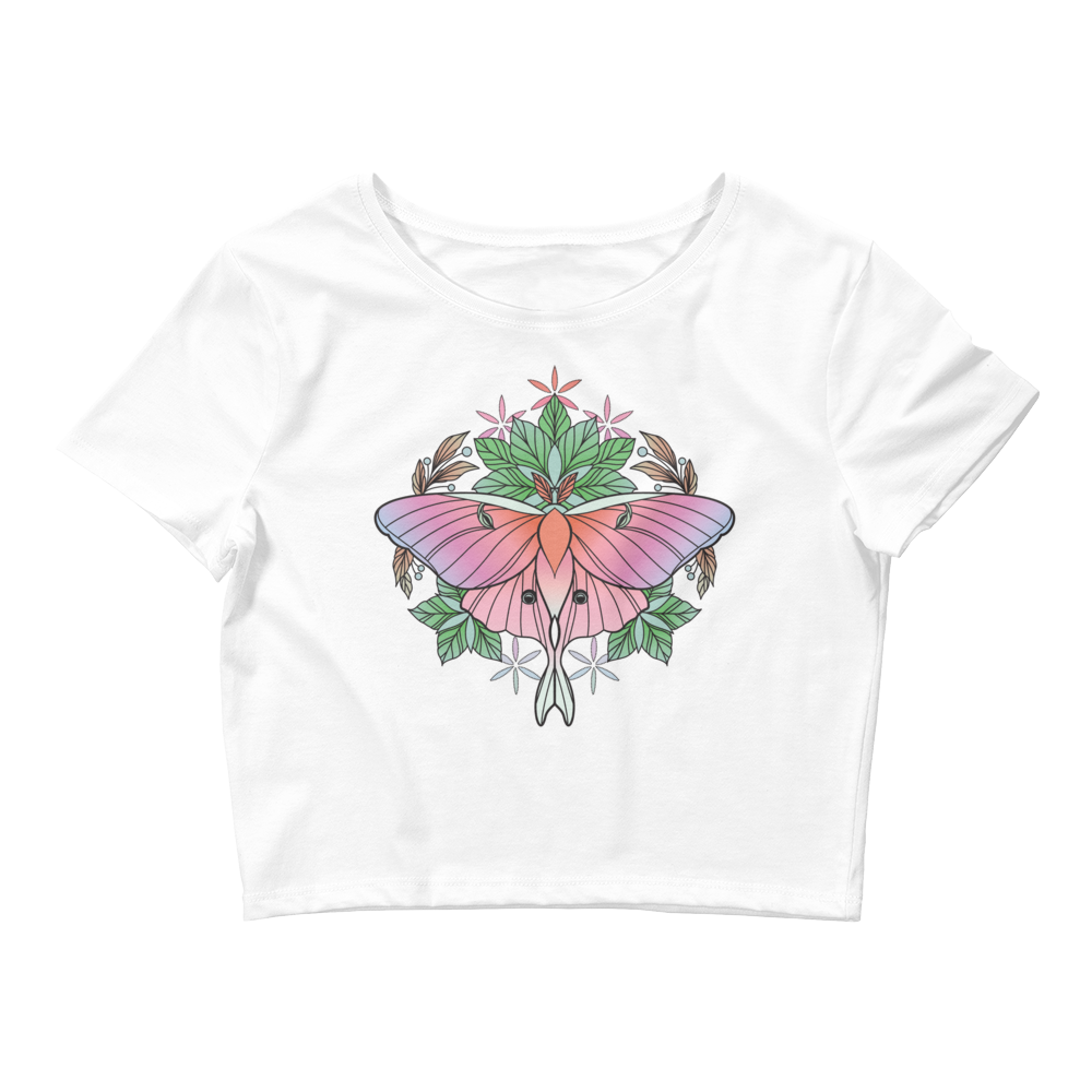 V4 Sacred Lunar Moth Crop Top (Hemmed Bottom) Featuring Original Artwork by Abby Muench